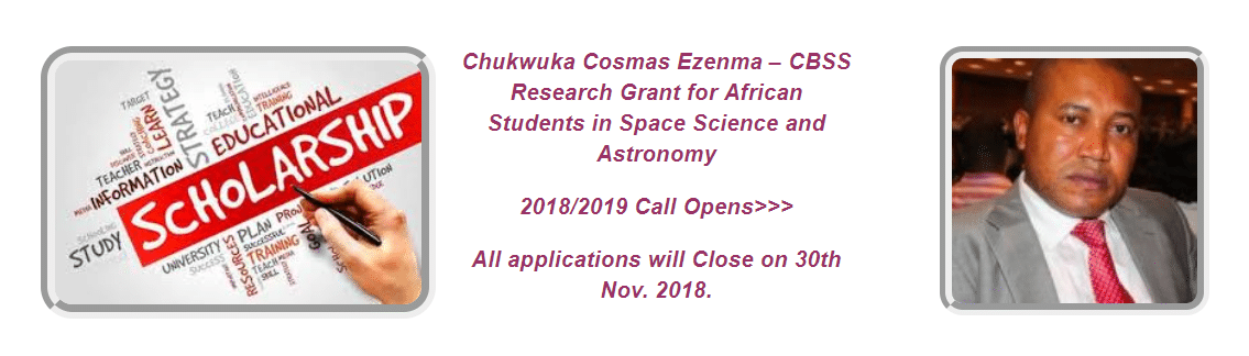 Chukwuka Cosmas Ezenma-CBSS research grant for African students in space science and astronomy offers grants in favor of African students and researchers including Nigerians in order to develop capacity in space science and technology, Electronics Engineering, Astronomy and Astrophysics, foster international, cultural, scientific and technological cooperation in Africa. Application Deadline: 31st December 2019. Eligible Countries: African countries To […]