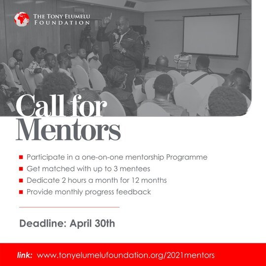 0 Comment to "Apply to be a mentor: Tony Elumelu Foundation (TEF) Mentorship Programme 2021"